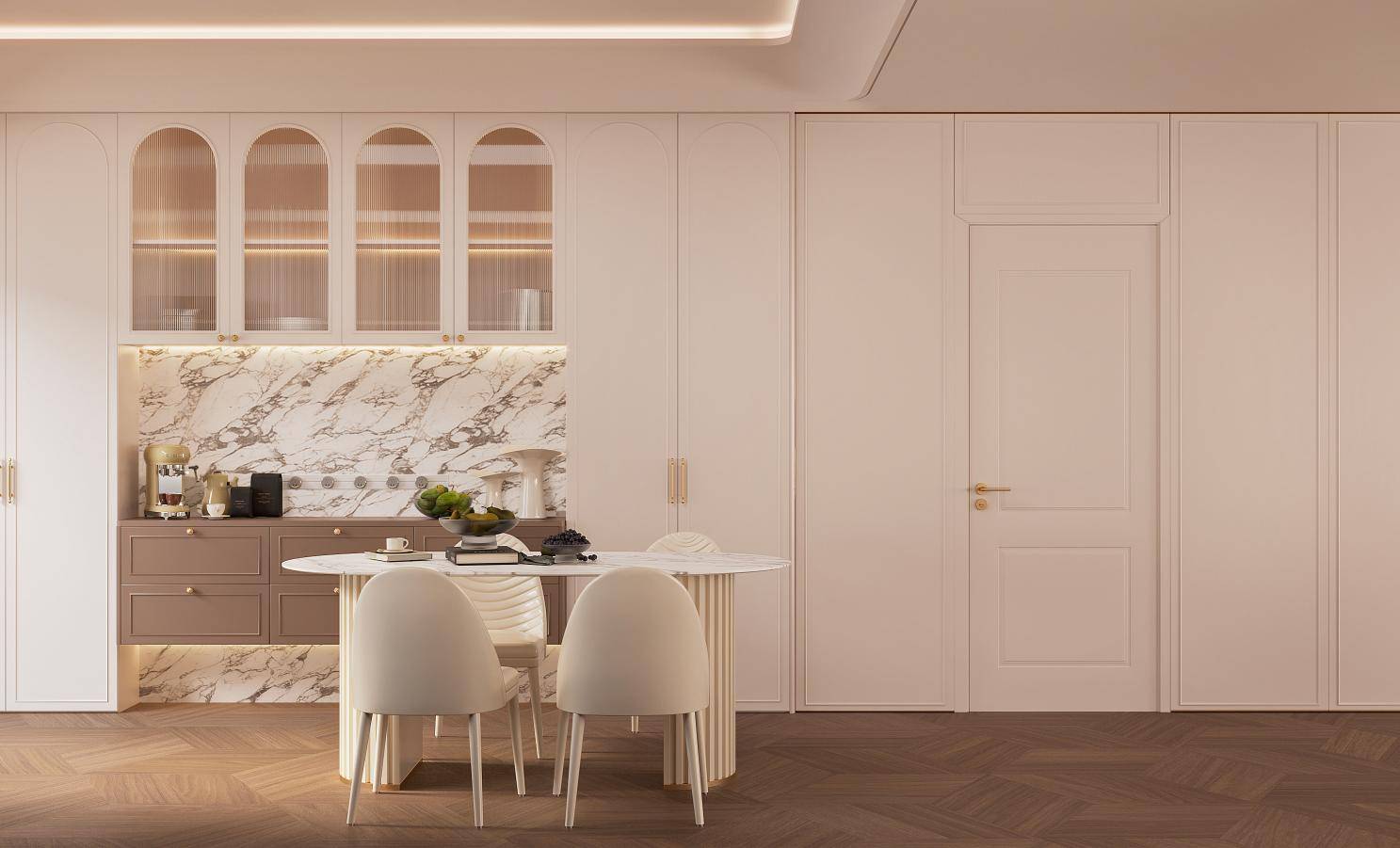 星级美学:门墙柜一体化设计,消除空间边界感,搭配遵循黄金法则的配色、升级的材质触感与灯光美学,让家居颜值与格调兼具。